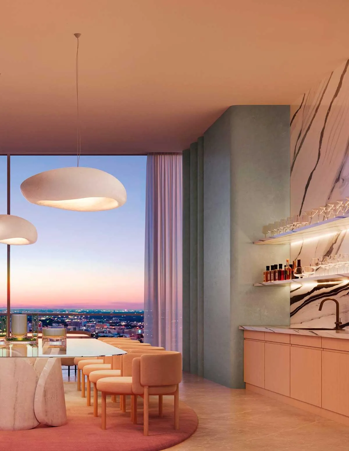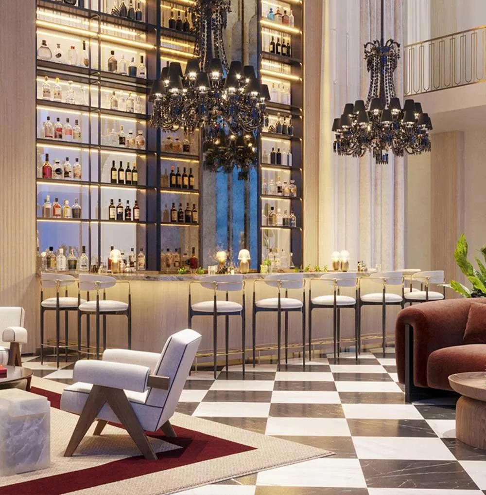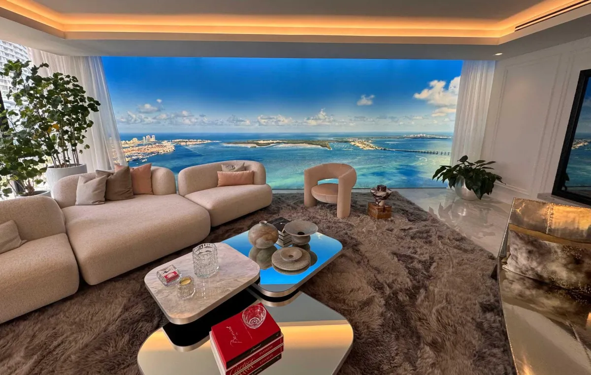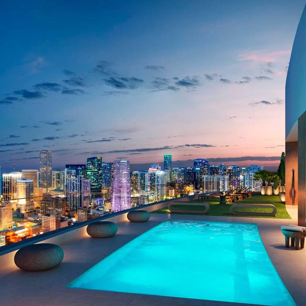 DESIGNED BY THE WORLD-RENOWNED ARCHITECTURE AND INTERIOR DESIGN FIRM “ARQUITECTONICA.” ITS FACADES RESEMBLE WAVES MOVING THROUGH A SEA OF GLASS. BACCARAT RESIDENCES MIAMI IS LOCATED IN THE HEART OF BRICKELL, AND THANKS TO ITS HIGH CEILINGS AND LOCATED IN THE CENTER OF BRICKELL AND THANKS TO ITS HIGH CEILINGS AND FLOOR-TO-CEILING IMPACT GLASS, IT ENJOYS UNPARALLELED VIEWS OF MIAMI AND BISCAYNE BAY ON THE UPPER FLOORS.